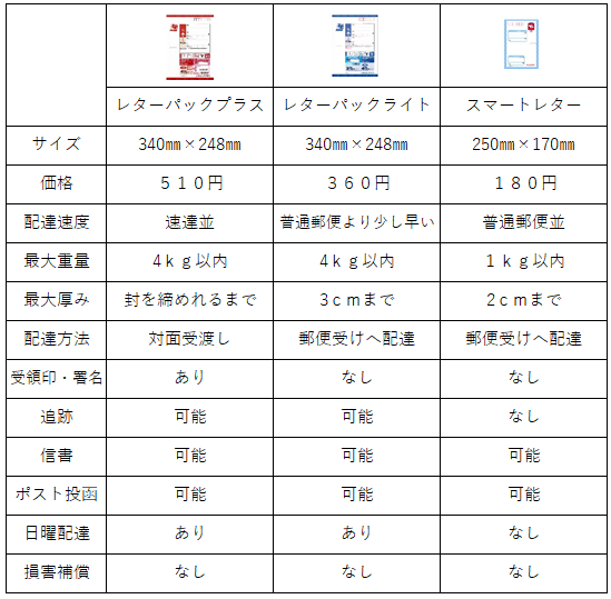 各々の内容を理解してより効率的な郵送方法を選択してください。