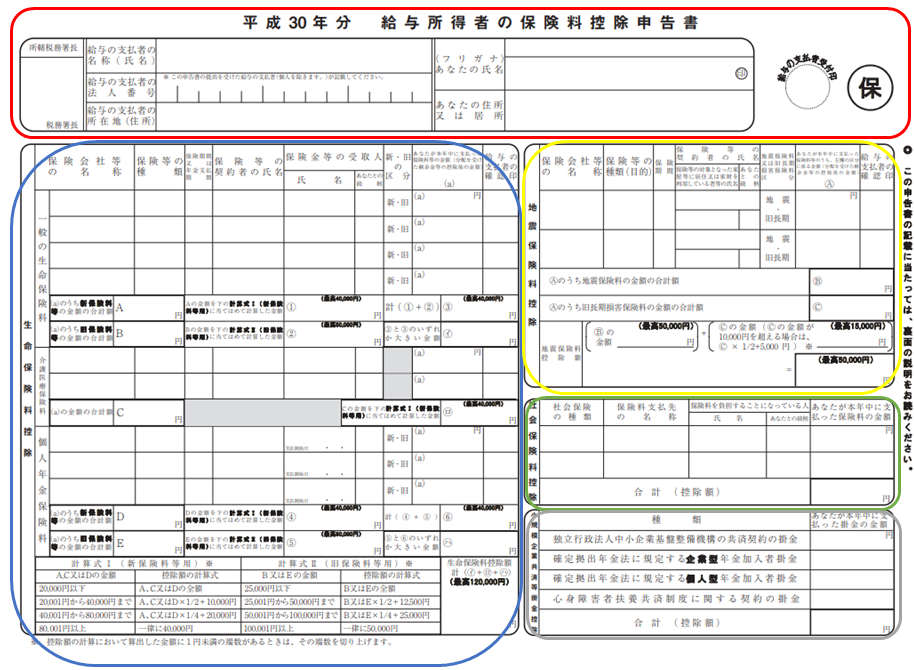 さて、それでは保険料控除の申告書の書き方について5つに分けて説明します。