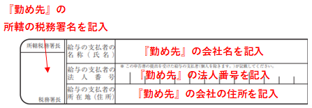 給与支払者受付印のところに印鑑を押したくなるのもわかりますが、ここは会社側が使用するところになりますので、ここには何も押さないでください。